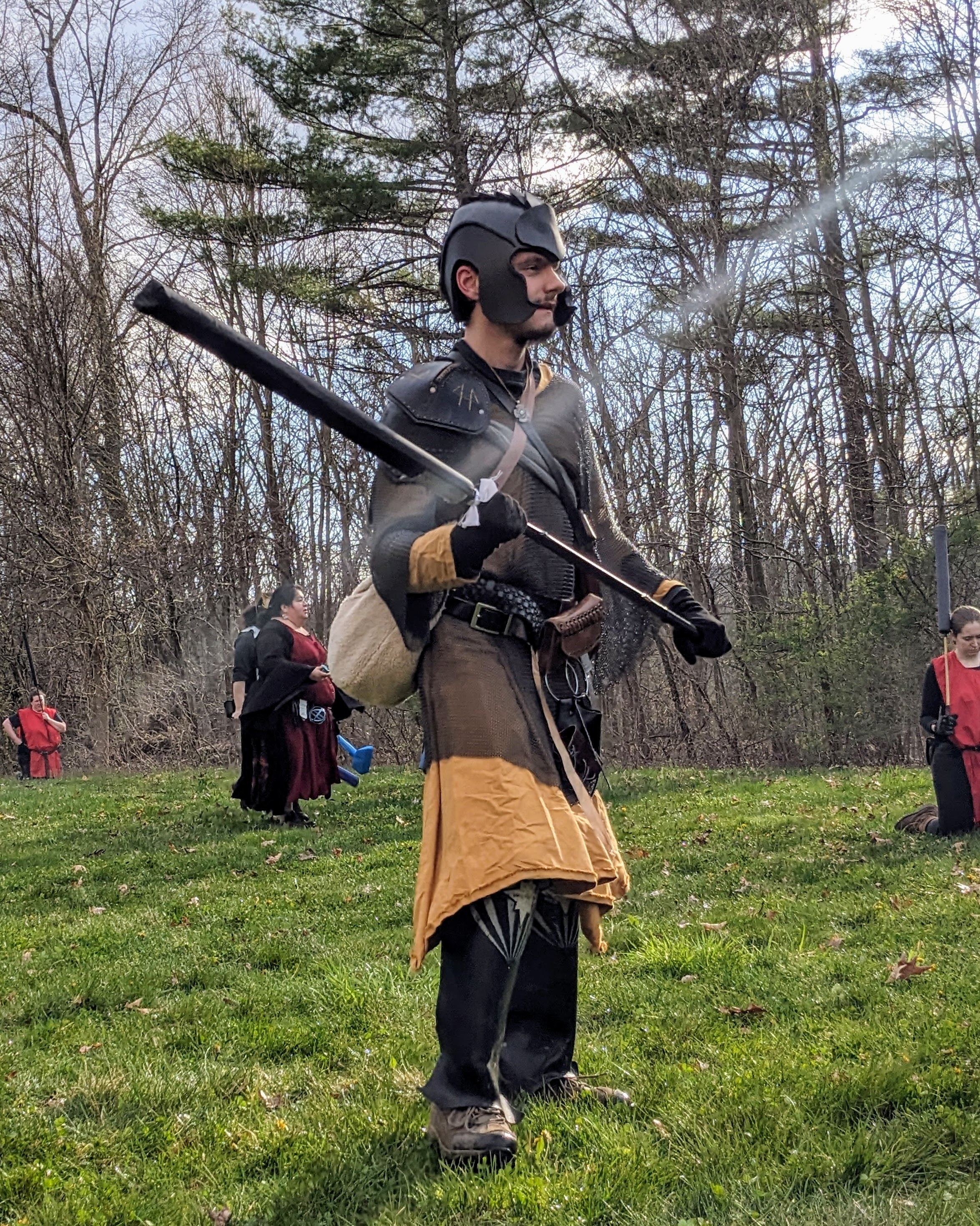Devyn first was introduced to adventuring at the Black and White of 1011. She began petitioning Gryphon Hall two years later. While she is a squire to the Knights of the Crown, her true crowning achievement involves making incredible soups for Black and White, and gaining the nickname “the Soup Elf”.